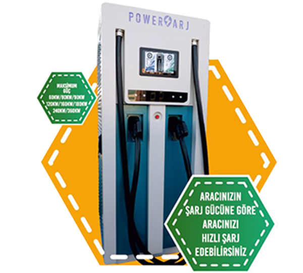 Aracıma Şarj yüksek hızlı dc şarj istasyonu 60kW modeli 15 dakikada 110km, 90kW modeli 15 dakikada 170 km şarj sağlayabilmektedir.