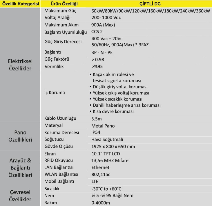 DC model şarj gücünü 360 kW’a kadar yükseltme esnekliği sunmasının yanı sıra aynı anda 2 araca kadar şarj etme özelliği ile şehir içi ve şehirler arası kullanım için üniteyi kusursuz kılar.